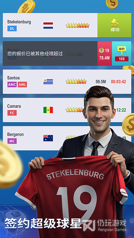 跟踪转会市场,24小时都有新球员挂牌;俱乐部间球员报价,还原真实交易!