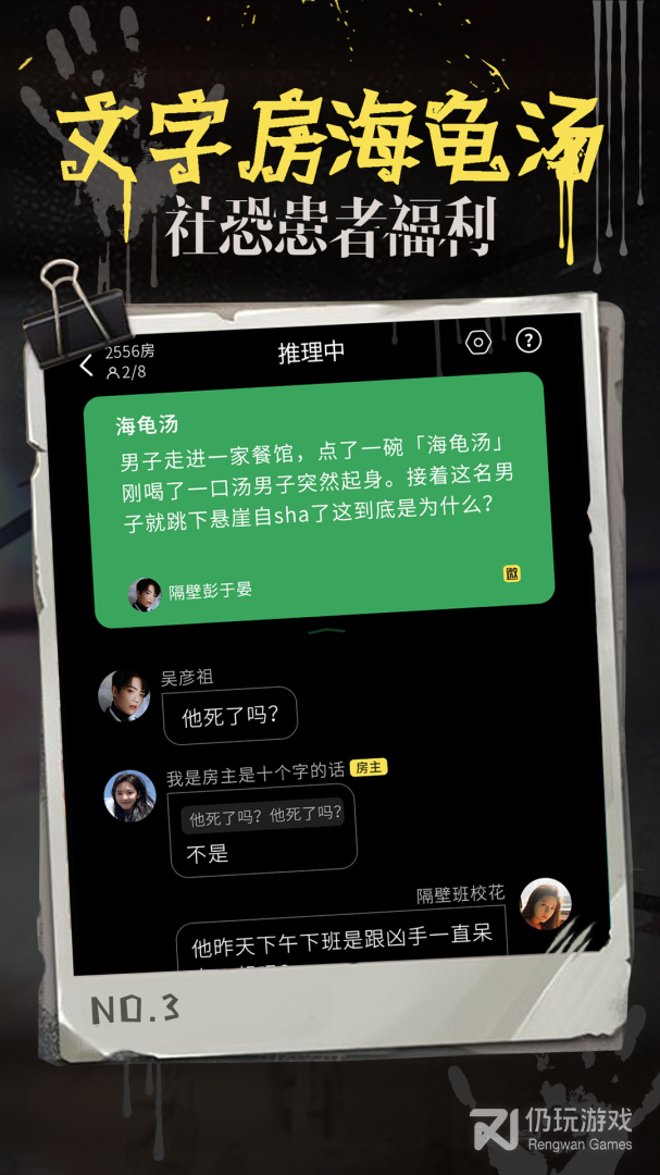 【互动性、娱乐性强】只有通过交流才能得出线索。很适合陌生人中破冰交友。