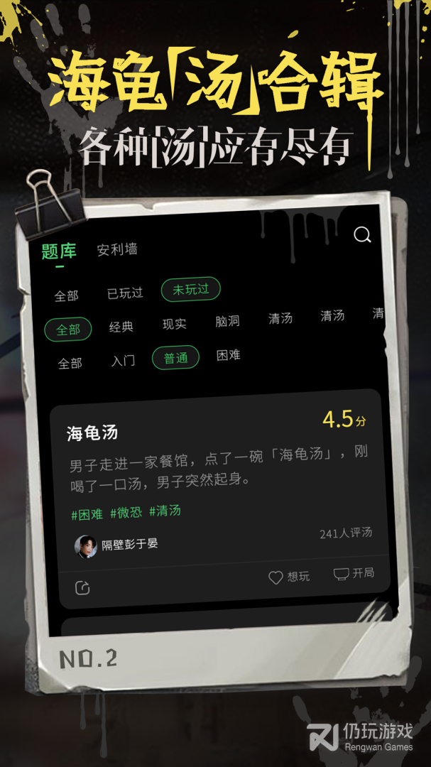 海龟汤情景推理聚会玩社交软件,是一款通过海龟汤社交场景,提供给多人参与的、通过文字、语音等形式进行聊天交友交流的社交平台。