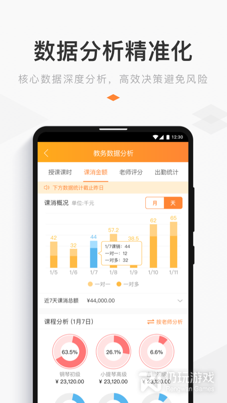 软件对于那些教育机构的管理人员来说非常的实用,不管是学生还是老师的资料都可以通过软件来一键管理,还可以在这里进行在线排课和考勤,让机构的运营更加智能化,可以极大提高机构的运营效率。