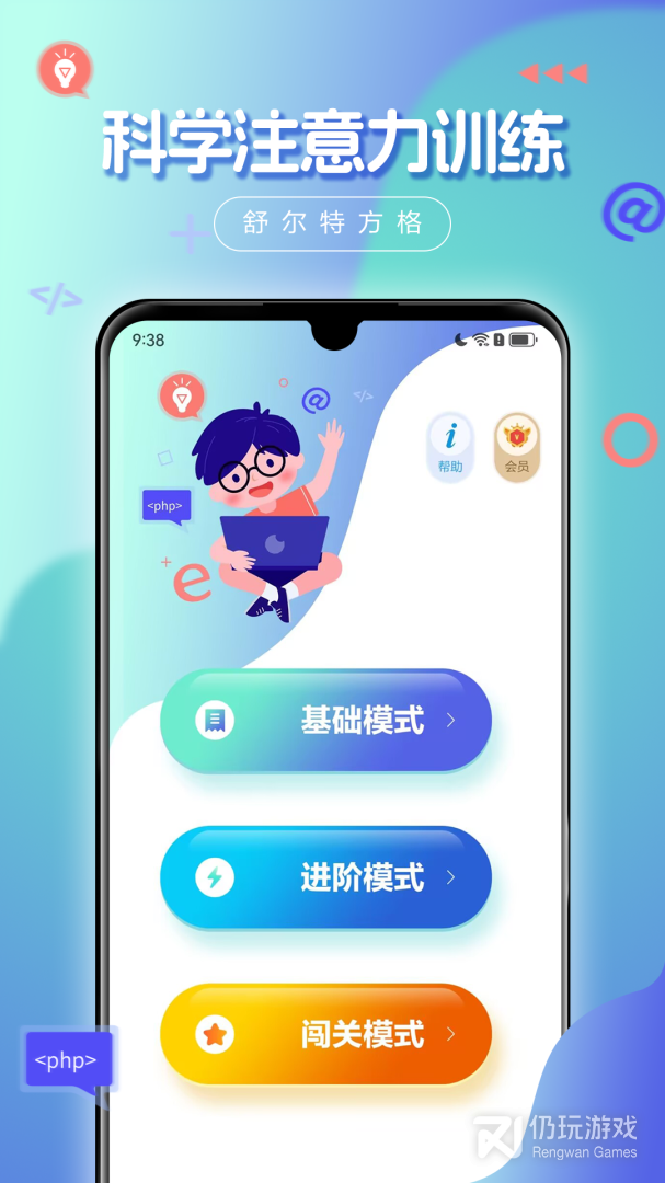 1、在游戏市场中找了半天没有合适的舒尔特方格就自己做了一个。