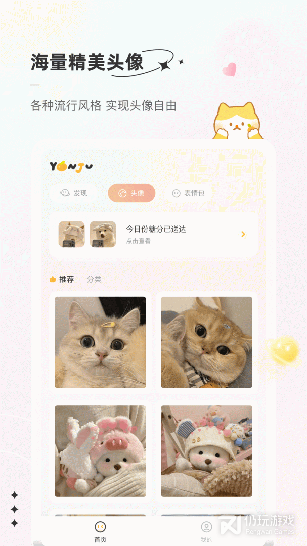 言橘是风格非常萌趣可爱的头像表情包分享下载软件,每天都会更新海量热门表情包、头像和壁纸,你可以根据自己的喜好来一键下载。当然,你也可以将这些图片分享到其他的社交平台上,让更多人了解这款软件,轻松获取各种可爱的宝藏美图。