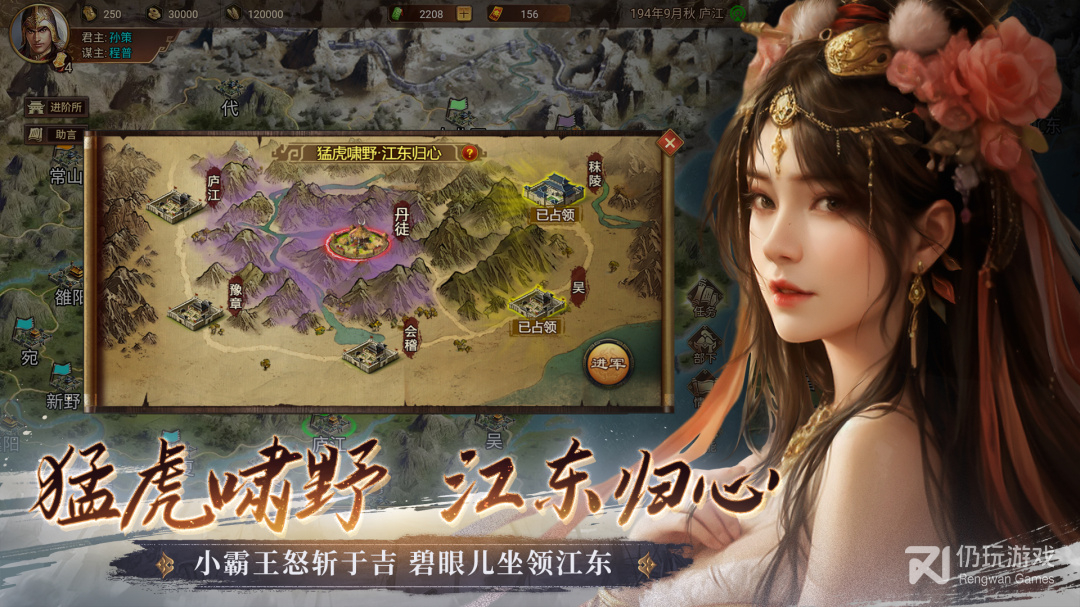 一款经典三国题材的策略游戏,当然游戏的很多玩法与内容都在三国志、霸王的大陆系列游戏基础上进行设计,而这个让游戏的可玩性是变得更高了。游戏中玩家你还是来到了这个熟悉的三国大世界中,当下属于你的历练与战斗从现在开始了。游戏的时候玩家你作为君主就要处理好内政与外交,二者都做好了才能帮助玩家你实现自己的最终目标。