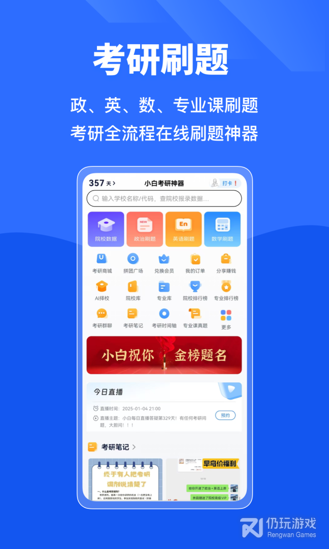 你有考研的想法吗?那就快来考研究生必备手机软件合集看看吧。这里汇聚了全国众多知名的资深考研老师,可以根据你的专业和个人情况来为你进行全方位的教学,定制你的专属考试计划,力求让每一个在这里学习的通讯都可以考试自己理想的研究生。