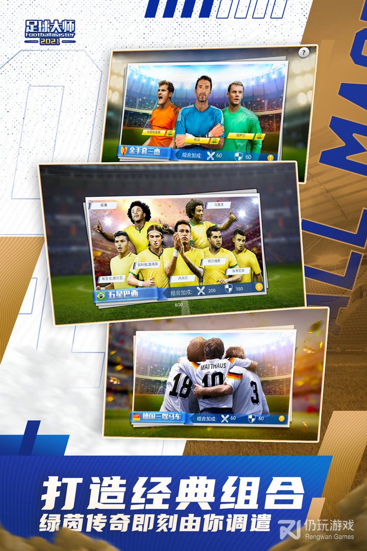 1、足球大师黄金一代是一款以绿茵球场刺激的足球玩法为核心打造的体育手游。游戏收集了众多知名球场真实数据,并原样还原了众多角色,旨在为玩家们提供最真实的球员培养玩法哦!