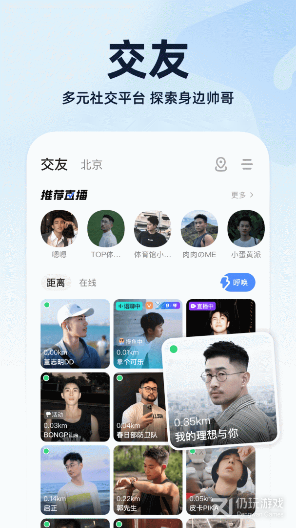 blued是一款倡导健康生活的直播互动应用和健康教育平台。它基于精准的地理定位,可以发现和找到身边志同道合的朋友,并加入不同的兴趣群组与大家互动,还有新鲜、好玩的直播功能。blued可以发现身边的好友,查看他们的可公开资料、相册和动态,根据自己的兴趣爱好进行多维度匹配。除了为垂直人群提供方便、快捷的通讯社交服务外,blued还积极推动利用移动互联网和社交新媒体开展艾滋病防治宣传。