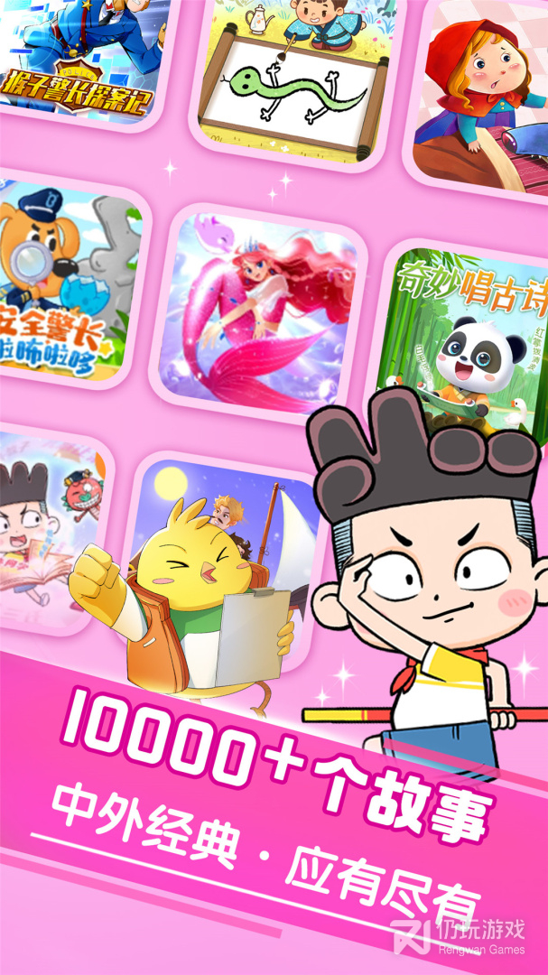 故事:十万个为什么、美人鱼公主、拼音王国历险记、猴子警长探案记、我是兔一一、睡前故事等