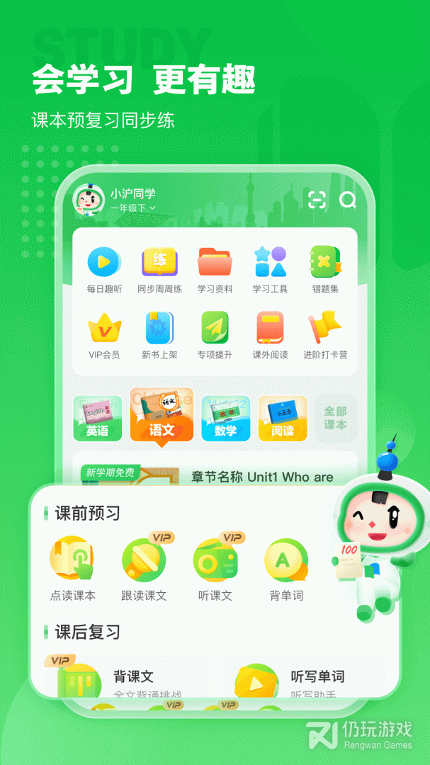 沪学习是上海中小学在线学习平台,出版社官方授权1至9年级全科课本,以“智能点读”为核心功能,为上海中小学生提供丰富的课内外教育资源和服务。
