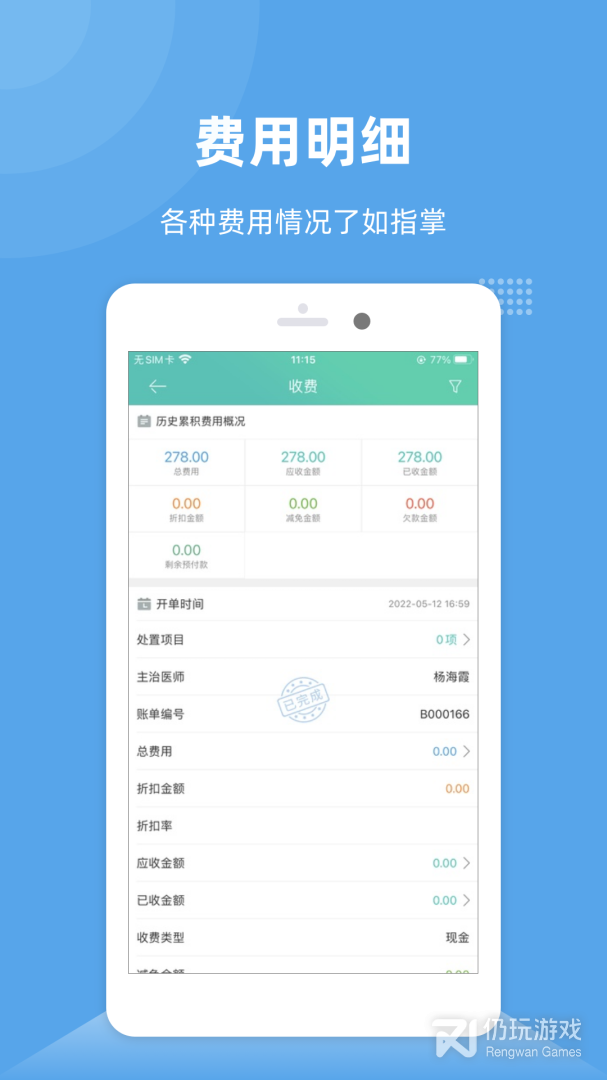 该软件最希望直观了解诊所运营情况,可数据汇总往往需要专业统计人员,而管家通过日常使用便可得到最精确的分析结果,有空时看一眼,经营状况尽收眼底。