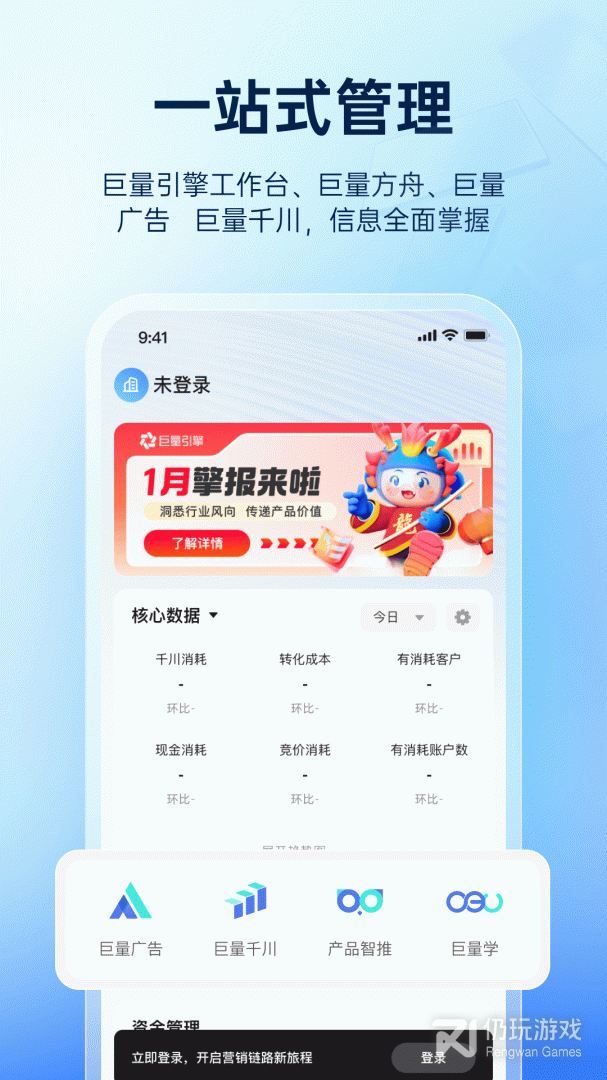 巨量引擎APP是巨量引擎推出的移动自助营销平台,深度整合了巨量引擎多款产品的核心功能,提供友好易用的投放链路,支持多账户推广数据查询及管理,重要消息和线索跟进,让您仅需一部手机就能玩转广告营销 。