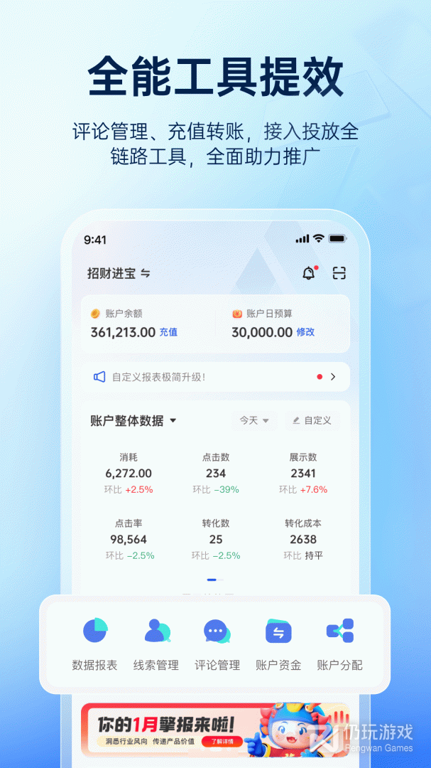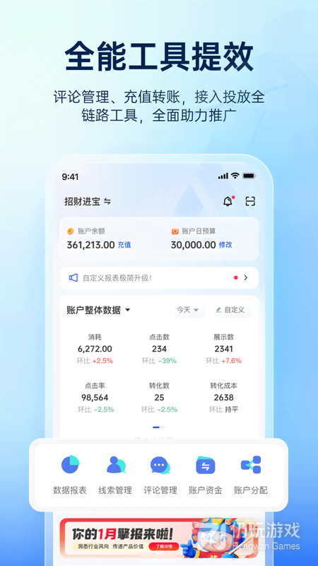1. 数据报表:便捷查看广告、账户各项实时数据及历史数据,掌握投放效果;