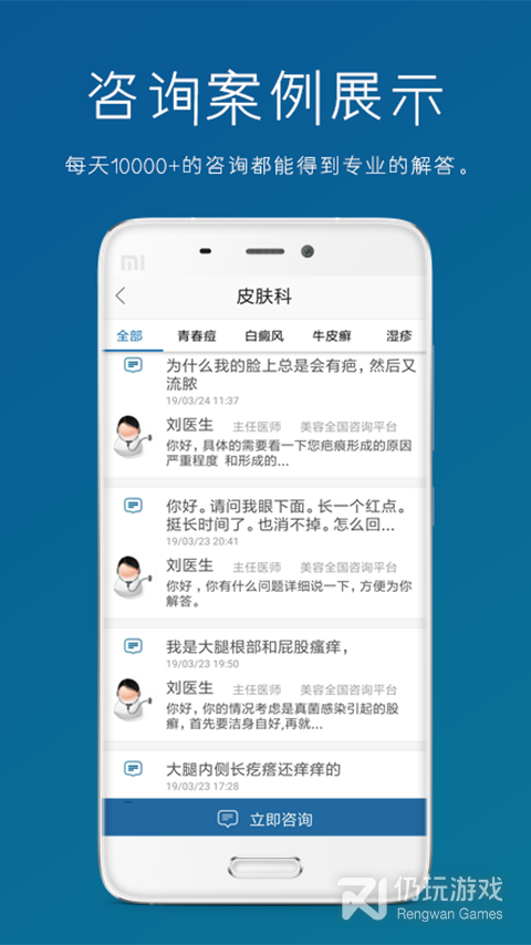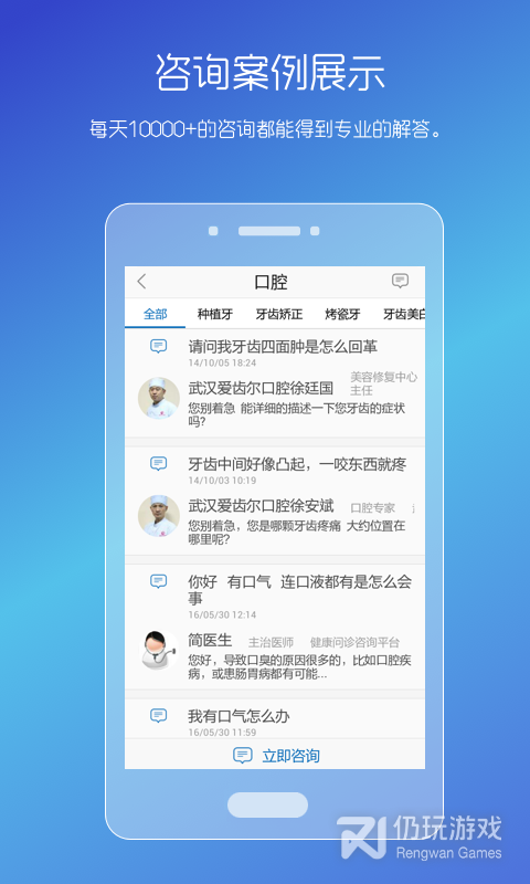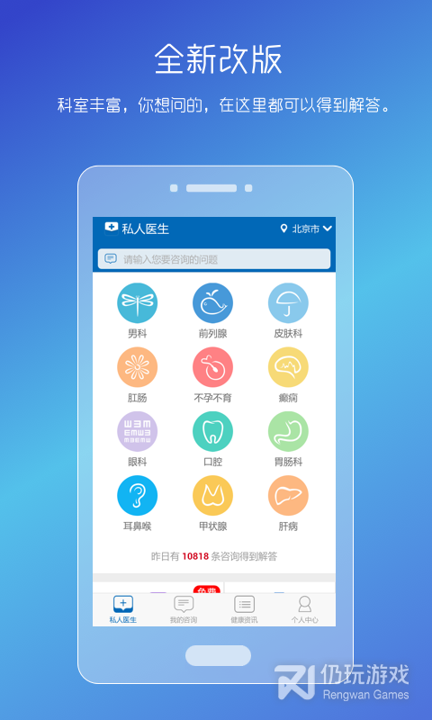 科室齐全,男科健康,口腔,皮肤等12个不同科室可咨询,用户按需选择。