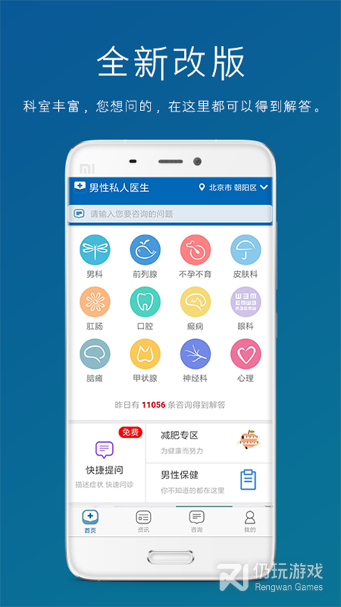 快速问诊,按科室按地区进行一对一免费健康咨询。