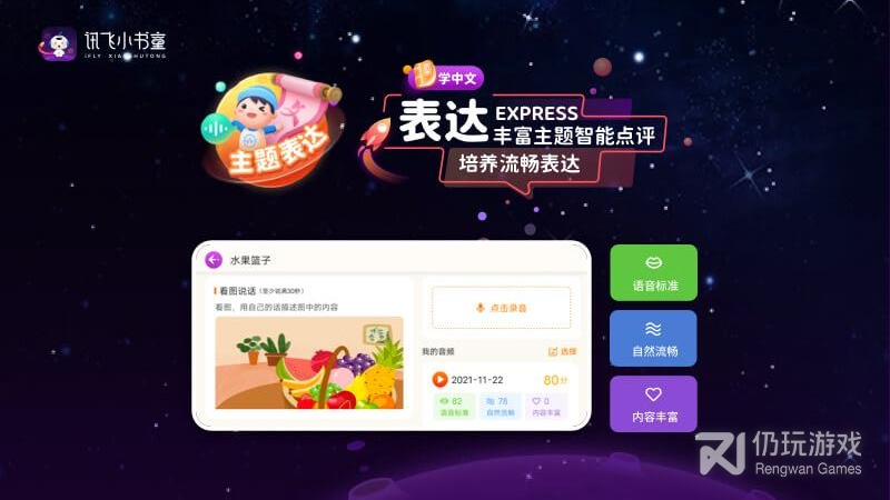 通过“字、词、文章听读,国学诵读,主题表达,模考演练”旨在让孩子出口成章。
