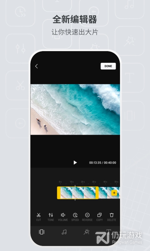 · 你还可以体验编辑器中丰富的视频模板,快速分享精彩瞬
