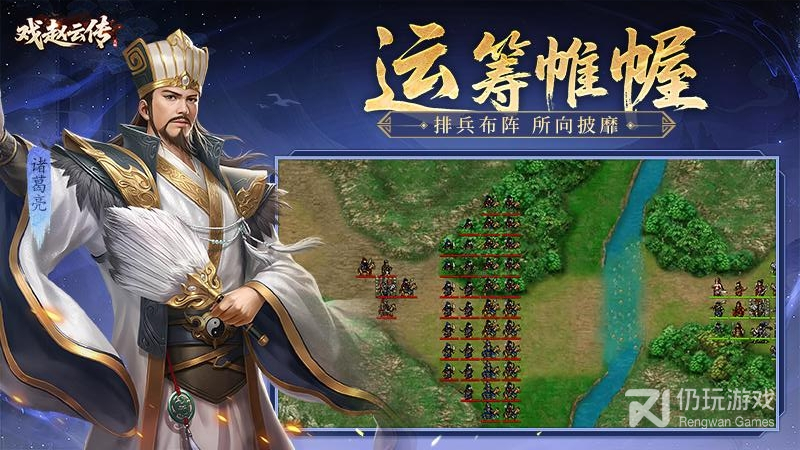 4、三国戏赵云传是一款经典三国题材的大型策略战棋手游。游戏采用写实风格绘画,完美还原了三国时期的经典人物特点和历史桥段。在已有故事上推陈出新,带给玩家们新奇的三国争霸游戏体验。全新的三国战棋游戏体验,尽在三国戏赵云传