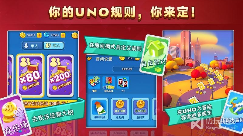 还记得那些货架上令人心动的专属卡吗?他们化身各种规则卡,让你随意组合并命名属于自己的规则体系,在免费的房间模式中使用。试想一下,把小丑牌、反弹牌、连续+2+4、换牌、强制出牌等全部合在一起,是怎样的神奇乐趣。再也不怕你家的村规在游戏里找不到了!
