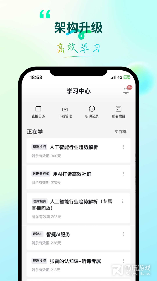 拥有海量学习资源,不管你想要从事什么类型的职业都可以在这里找到相应的学习资料,对于那些想要提升自我的小伙伴来说挺不错的。不过软件内的课程都是需要付费的,在进行购买之前一定要反复思量。