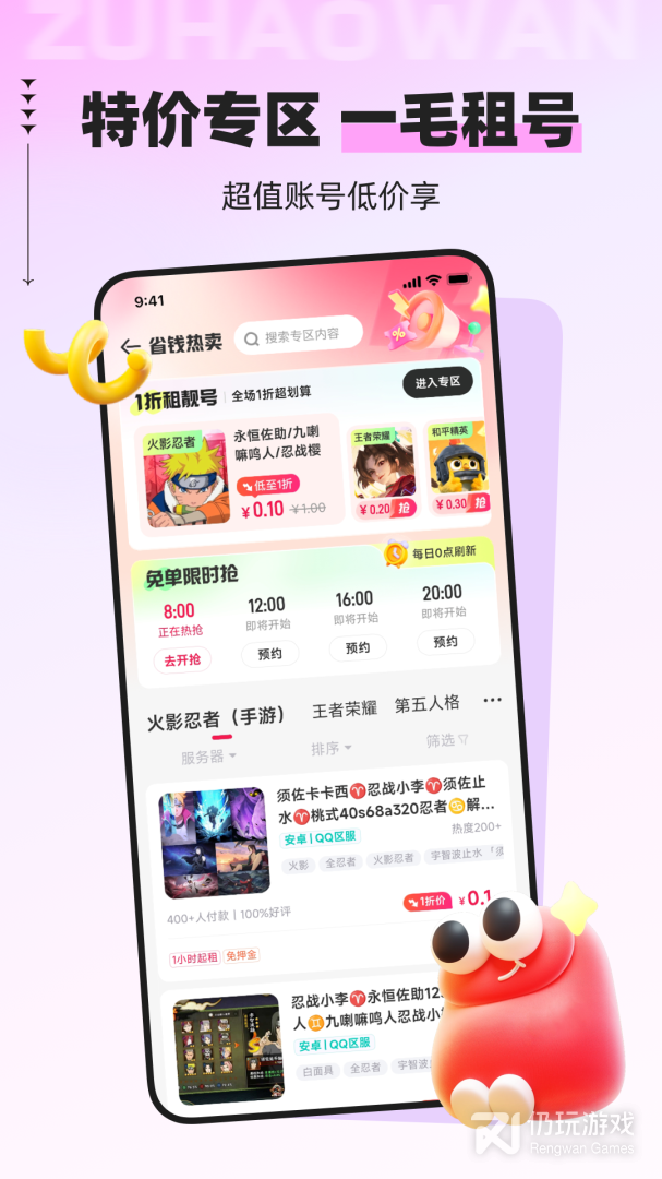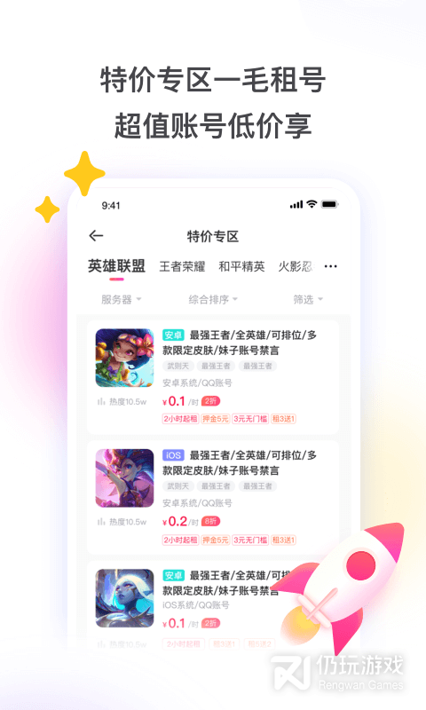 2、为用户提供了超高的租号性价比,您就能使用更低的价格租用游戏账号了