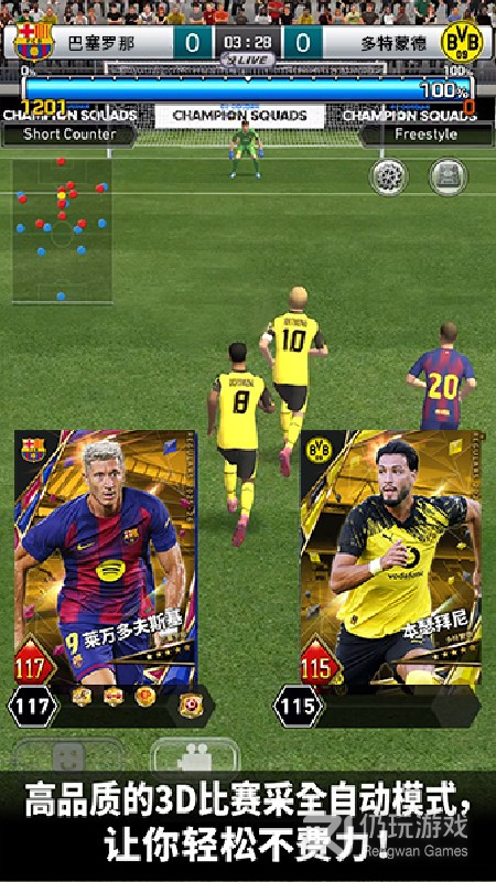 2、实况王者集结是将实况足球与卡牌对战完美结合的游戏!由知名日本厂商KONAMI与网易游戏合作推出,你将有机会获得各种足球名将的稀有卡牌,参加各种热门赛事,带领球队打出一番天地!多元化的养成系统,多名球员同时升级,培养团队意识!