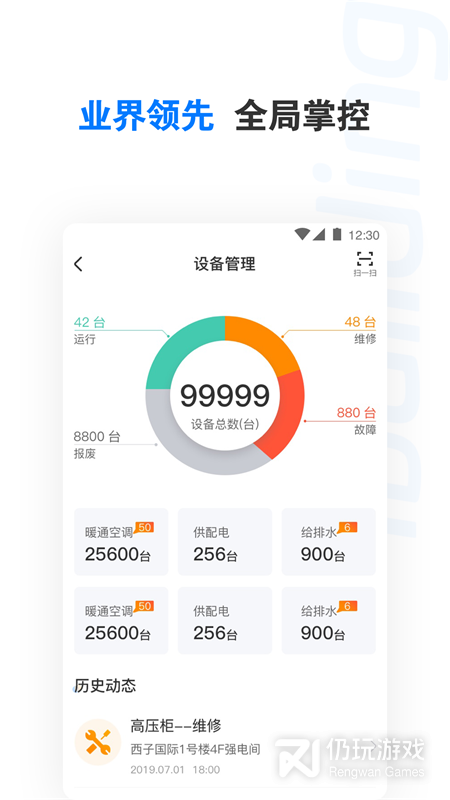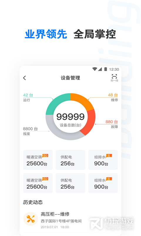 3、工作日历:巡检、预维护、报修等工作统一展示;租户、员工多渠道一键报修;工单全过程实时跟踪