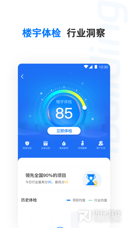 1.健康风险评价:从设备设施、能耗能效、安全合规、室内环境、客户满意度等方面对楼宇进行整体健康评价