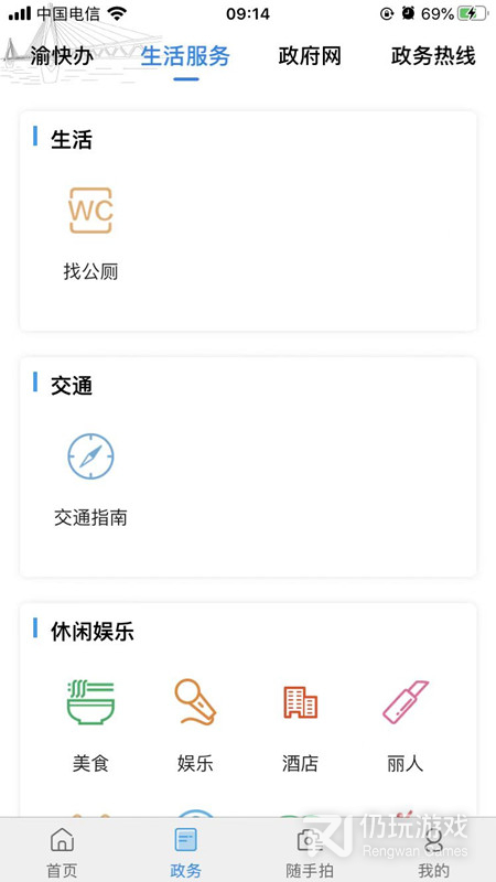 1、移动办事指南政策法规、公示公告、证件办理、社保、医疗、住房和教育,与政府政策联通,简化你的办事流程,便利你的重庆城市生活