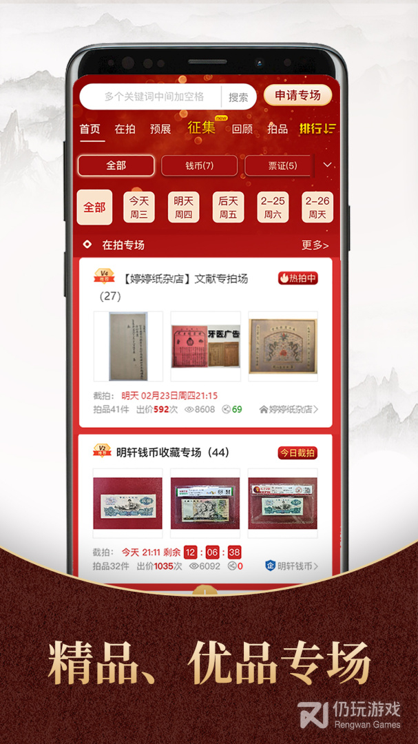 2、商城是一款专注于收藏品、工艺品、艺术品等在线交易的平台软件,这里的商品类目真的十分的丰富,字画、木雕、报刊等等,用户可以根据分类来查找自己需要的商品,更有零售、拍卖、定制等多种的交易模式,用户可以任意进行选择,并且还可以在线与其他的用户朋友们一起交流呢