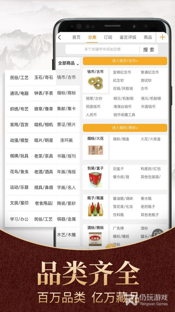 2、万千的目录信息,可以让你快速的发现自己喜欢的商品、文玩等资源数据