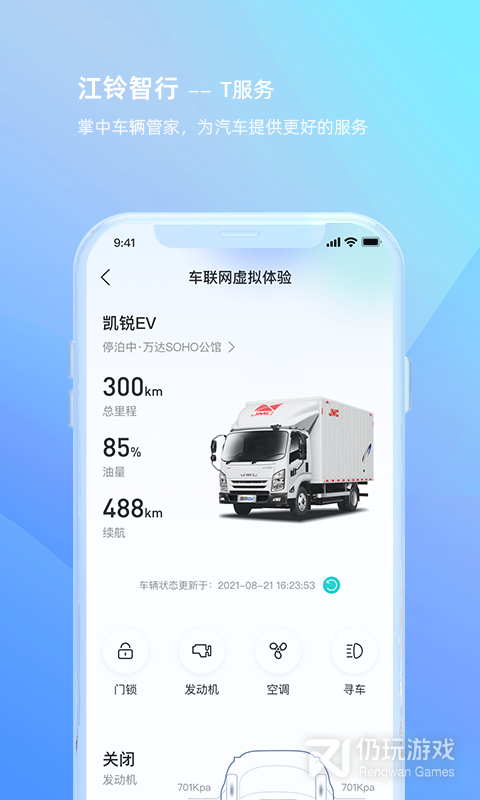 3、江铃智行是一款智能车载控制软件,实现手机对车辆的远程控制、远程查询、远程体检、远程安防等,帮助车主更好的爱护车辆,轻松开启智慧车生活