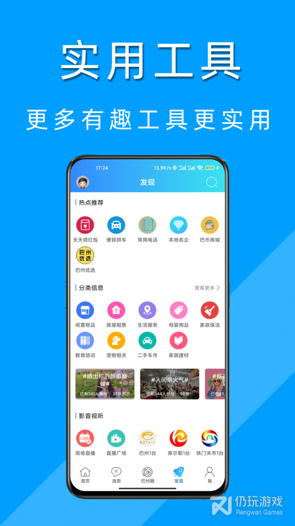 4、巴州在线是最新推出的一款推出服务软件,主要为用户提供巴州当地的吃喝玩乐、衣食住行等各个方面的信息,更新都是很及时的,还可以在线发布自己的需求,实时查询周边的福利获得,轻松提高用户的生活效率,需要的朋友不要错过哦