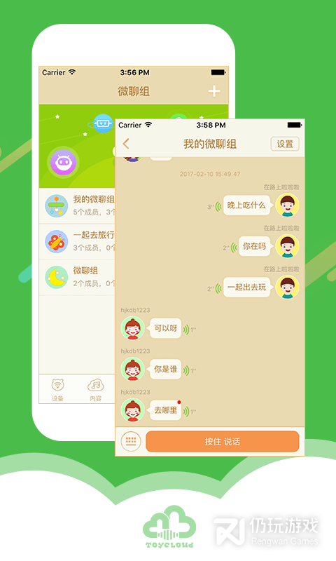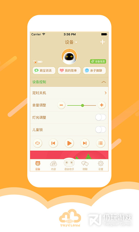 2.可以在微聊组中绑定各种智能设备,宝宝只要用玩具就可以与家长互动哦!