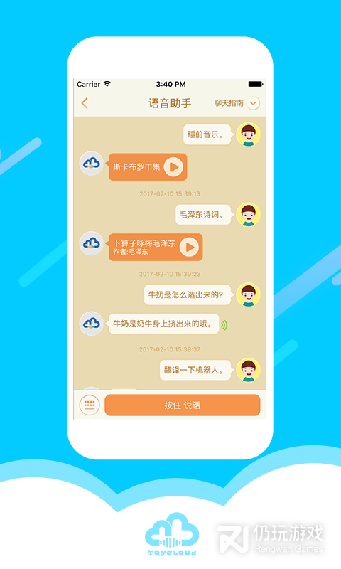 3、淘云互动是由科大讯飞开发的一款基于家庭亲子关系、可以配套阿尔法蛋系列智能机器人、讯飞智能护眼灯等硬件设备使用的儿童学习与社交APP。拥有微聊对讲,内容推送、在线益智教育等功能。淘云互动以“陪伴少年儿童快乐成长、开心学习”为使命,致力于亲子互动产品的开发设计
