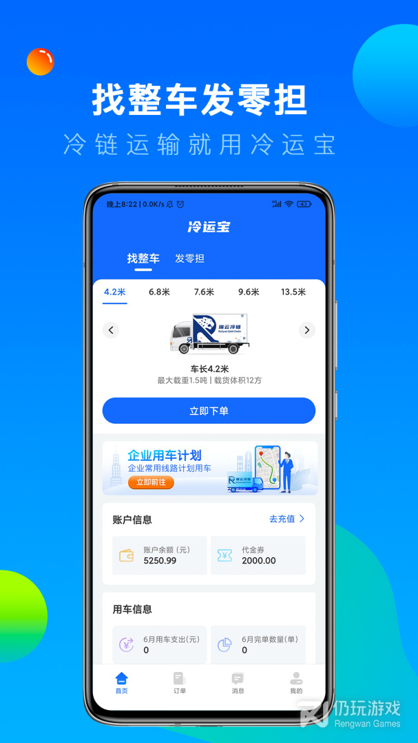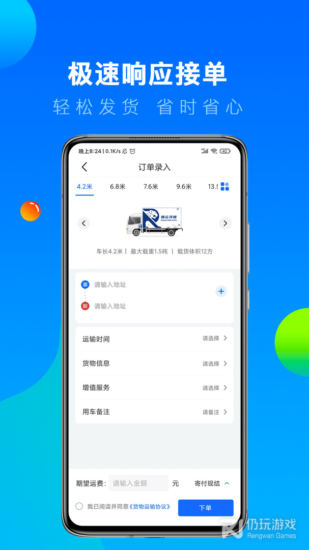 1、为货主提供冷链整车、零担货运两大物流服务,可以按照需求自定义选择下单