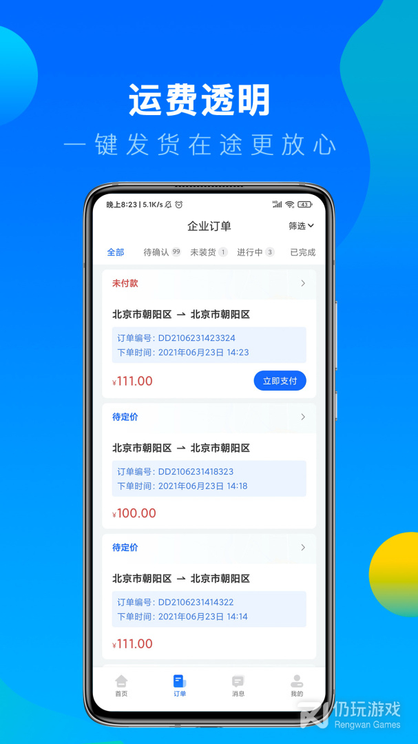 6、待确认、未装货、进行中、已完结四大类订单自动分类便于管理