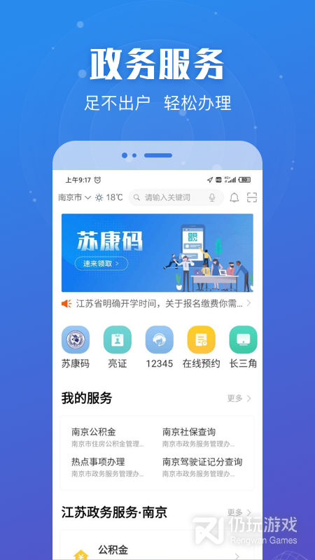 2、苏服办是一款由江苏省政务服务管理办公室开发的生活服务软件,软件内拥有很多政务服务功能,用户可以通过本软件打开自己的健康码方便出行核酸采集,线上便利很多生活业务,让用户生活更加便利