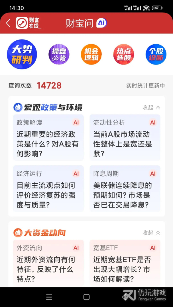 1、新增财宝问AI智能综合体,多维度覆盖大势研判、政策解读、个股诊断等 10+ 细分场景。