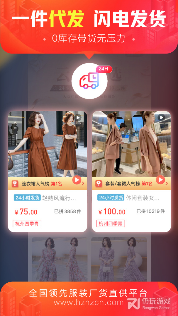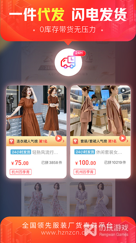 3、合作货源均来自杭州、广州、濮院、织里等中国大型服装产地,是中国电商批发行业的领头企业。