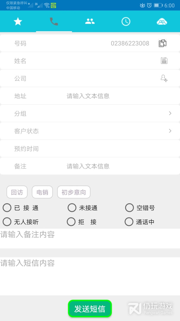 3、用户挂断电话,可以给用户发送短信,以便你的好友知道