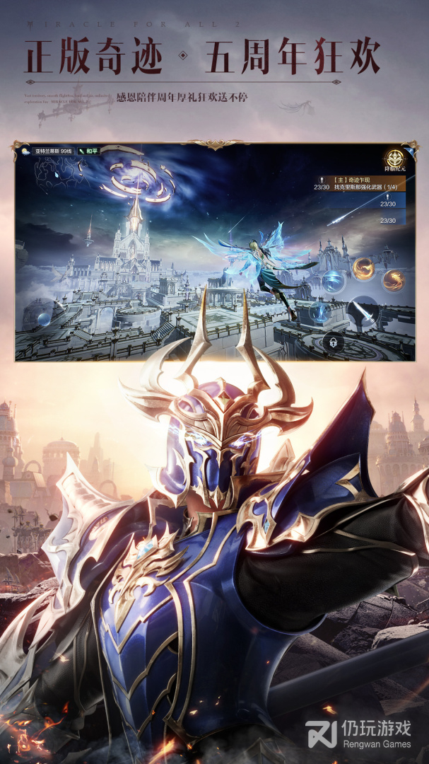 2、全民奇迹2是腾讯获得网石奇迹mu授权推出的mmo手游大作,全民奇迹2解禁你的魔法想象,以UE4打造,次时代炫酷画风,在这里可以燃烧战魂,寻找神装,与战龙搏斗,还有着全新的飞空体验