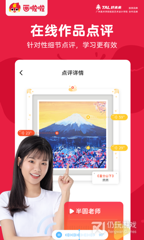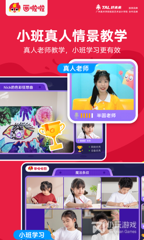3、画啦啦美术课堂是由广州六一信息科技有限公司特别打造设计的教育学习类应用平台,一个采用了非常先进的现代少儿美术教学方法,全面培养孩子的想象能力和创造能力的手机app,希望可以帮助到你呦