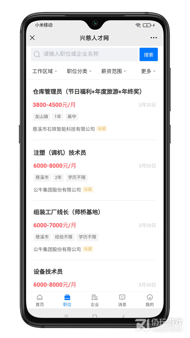 5、慈溪的小伙伴们还在为找不到工作而烦恼吗?快来试试这款非常好用的《兴慈人才网》APP吧,这款软件中有海量的招聘信息提供给大家,覆盖各个领域和各个行业,大家可以根据自己的情况选择求职,按条件进行筛选,从而找到自己满意的工作,快来试试吧