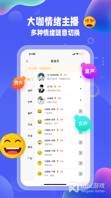 1、这款配音软件可以给配音主播加上各种情绪,甚至一个配音员就有将近十种情绪可选