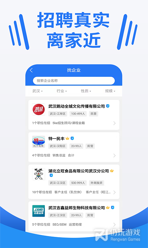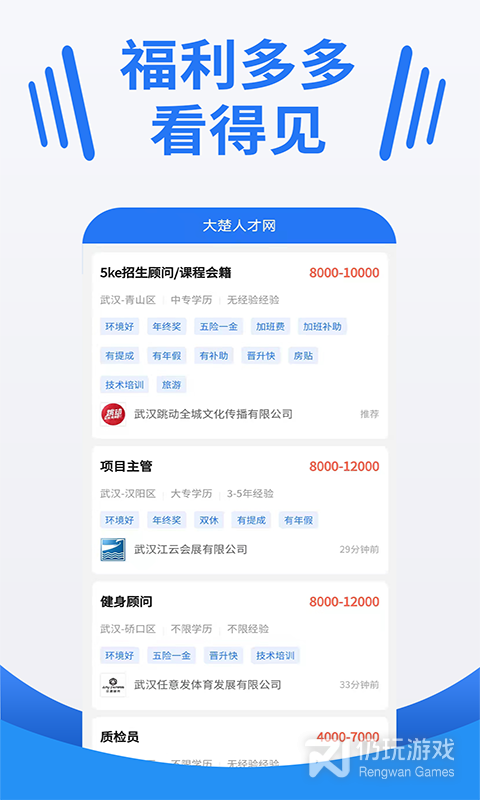 小伙伴们在平台里可以轻松找到自己喜欢的工作岗位,精准匹配招聘者和求职者,快速查看。有什么为题还能直接咨询线上的HR,所有的信息都是真实可靠的,让好工作主动找你!武汉招聘找工作求职首选APP