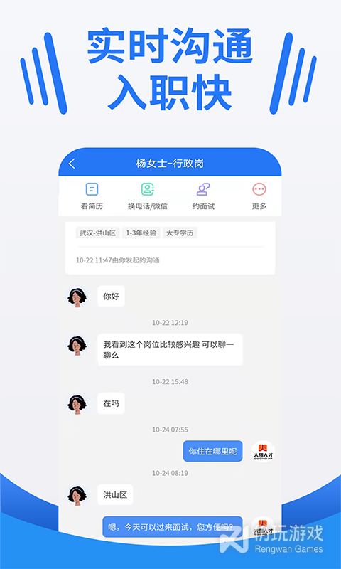 1、在线沟通随时聊与老板HR在线直聊,聊好再面试,好用又放心