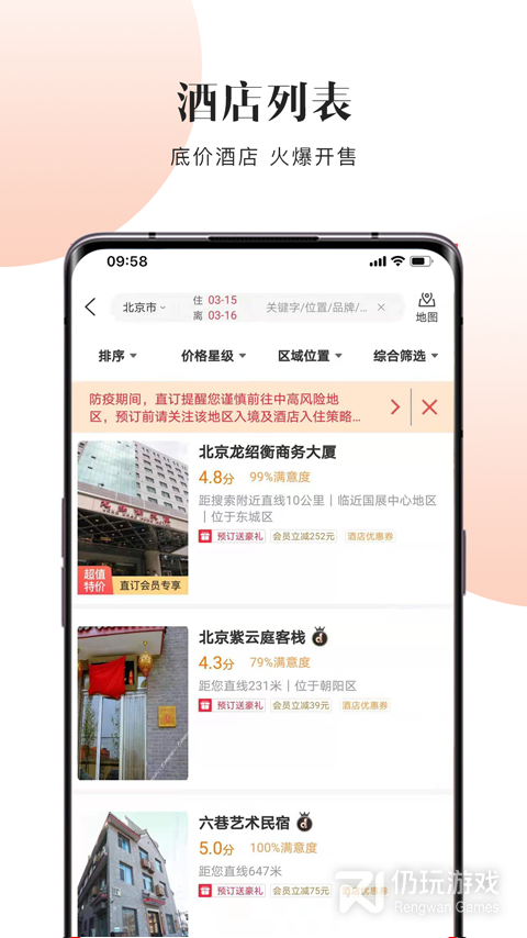 2、直订,这是一款非常实用的酒店预订类的软件,这款软件可以帮助用户轻松的预定到酒店,这样就再也不用担心没地方住了,操作也非常的简单,用户只需要输入地点就可以了,就会为你推荐周围的酒店,你可以根据自己的需求来进行筛选,你也能在线成为直订中的会员,订房会更加的便宜哦