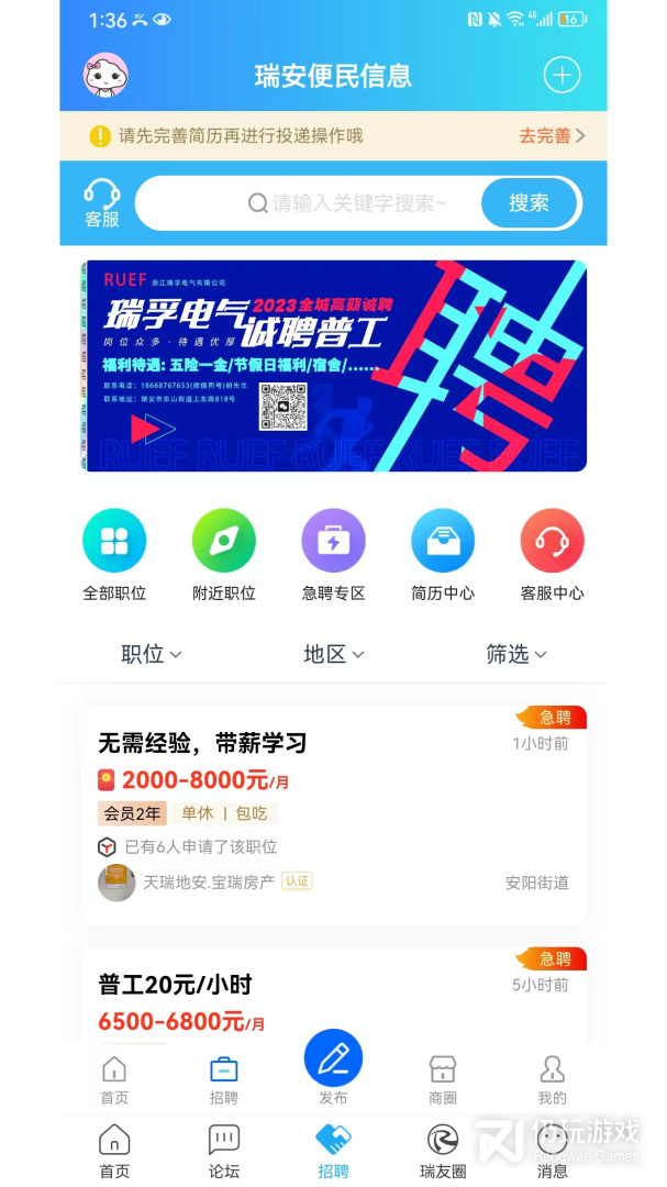 4、瑞安论坛是盐城滨海最具影响力的本地生活服务平台,致力于为用户提供便捷的生活交流空间和体贴的本地生活服务