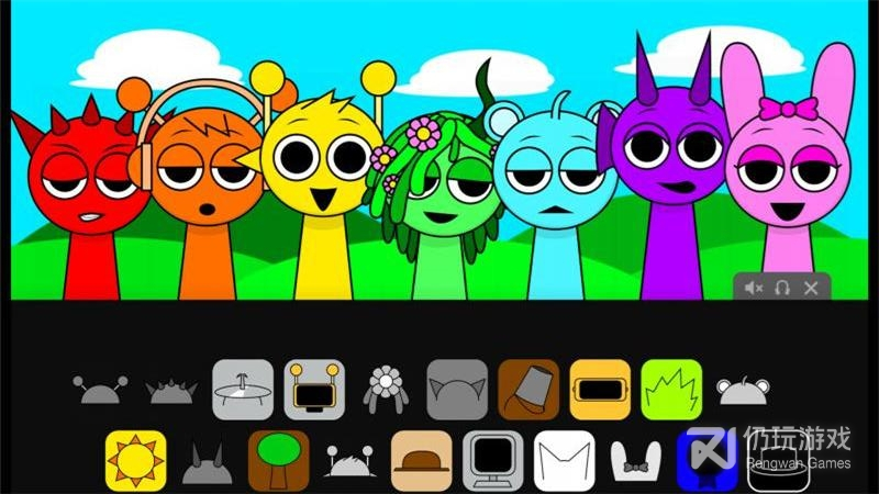 1、游戏采用的是简笔画来勾勒出游戏的角色,包括角色身上的衣服和各类饰品,游戏中不同的颜色和装饰品代表了不同的音阶
