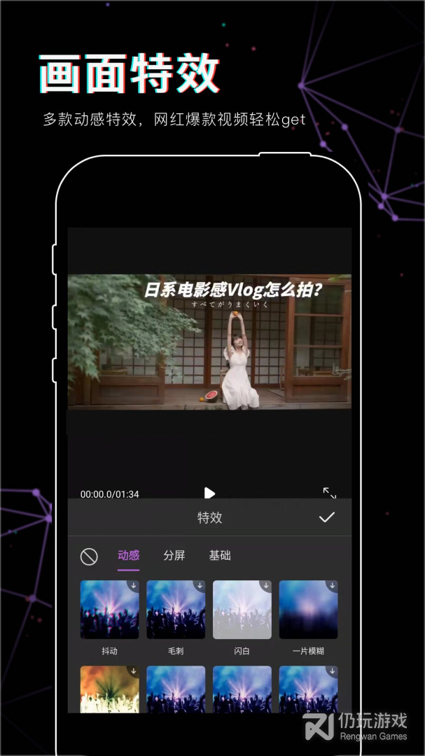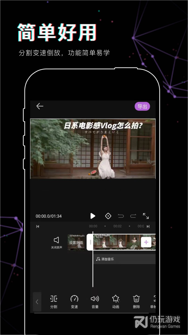 4、视频编辑必备工具支持本地视频剪辑、拼接、滤镜、配乐、字幕、主题mv、快慢放、旋转、提取音频、剪裁、涂鸦、倒放等各种便利视频工具,轻松实现视频特效