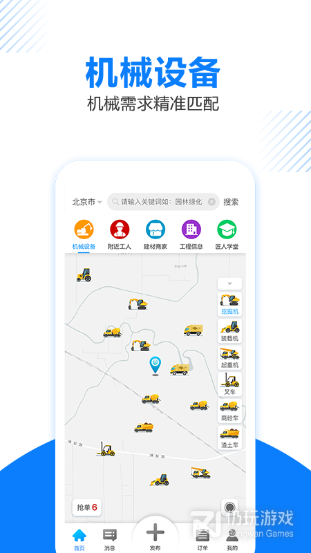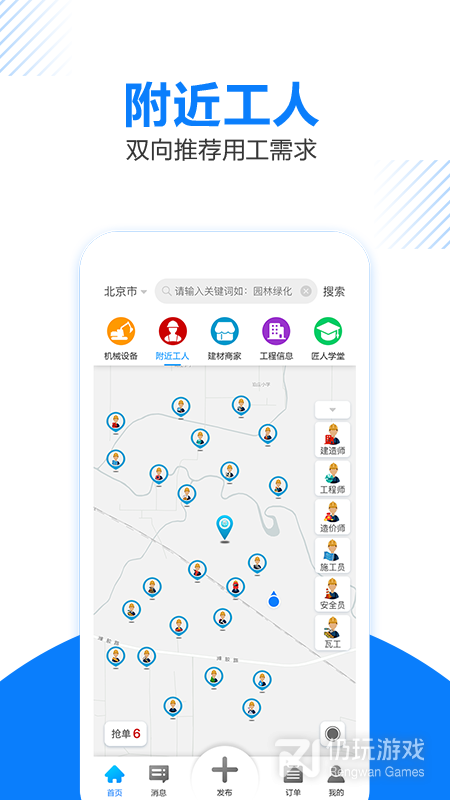 4、工匠人APP是一款提供工程相关服务的软件,涵盖了找机械、找工人、找建材、工程发包、匠人学堂等类型服务,为用户提供一站式人工智能大数据云平台。软件能够为用户提供专业的服务,致力于用至诚的态度服务每一位匠人